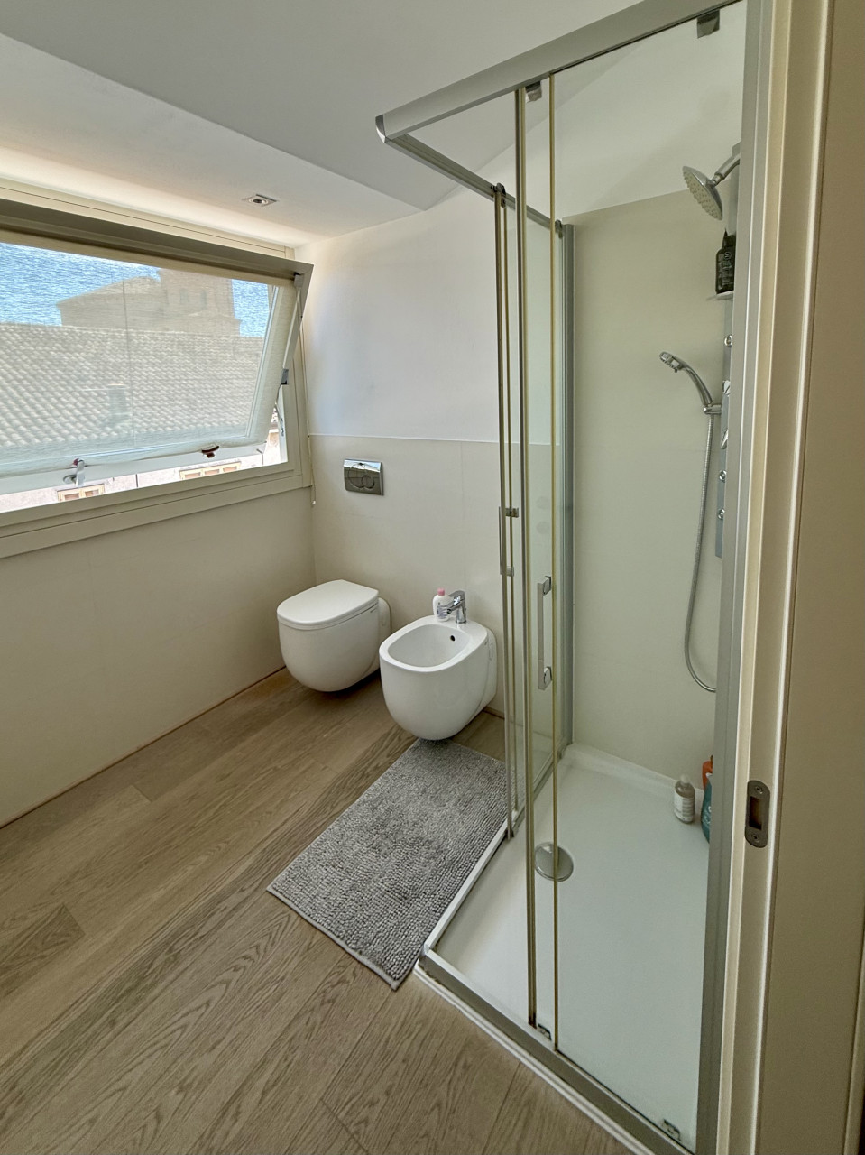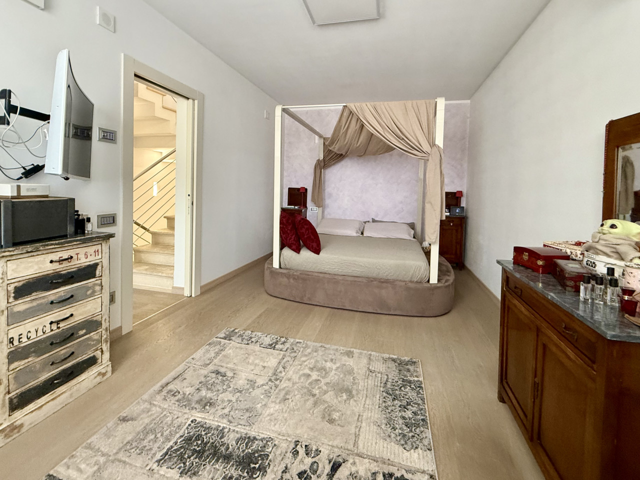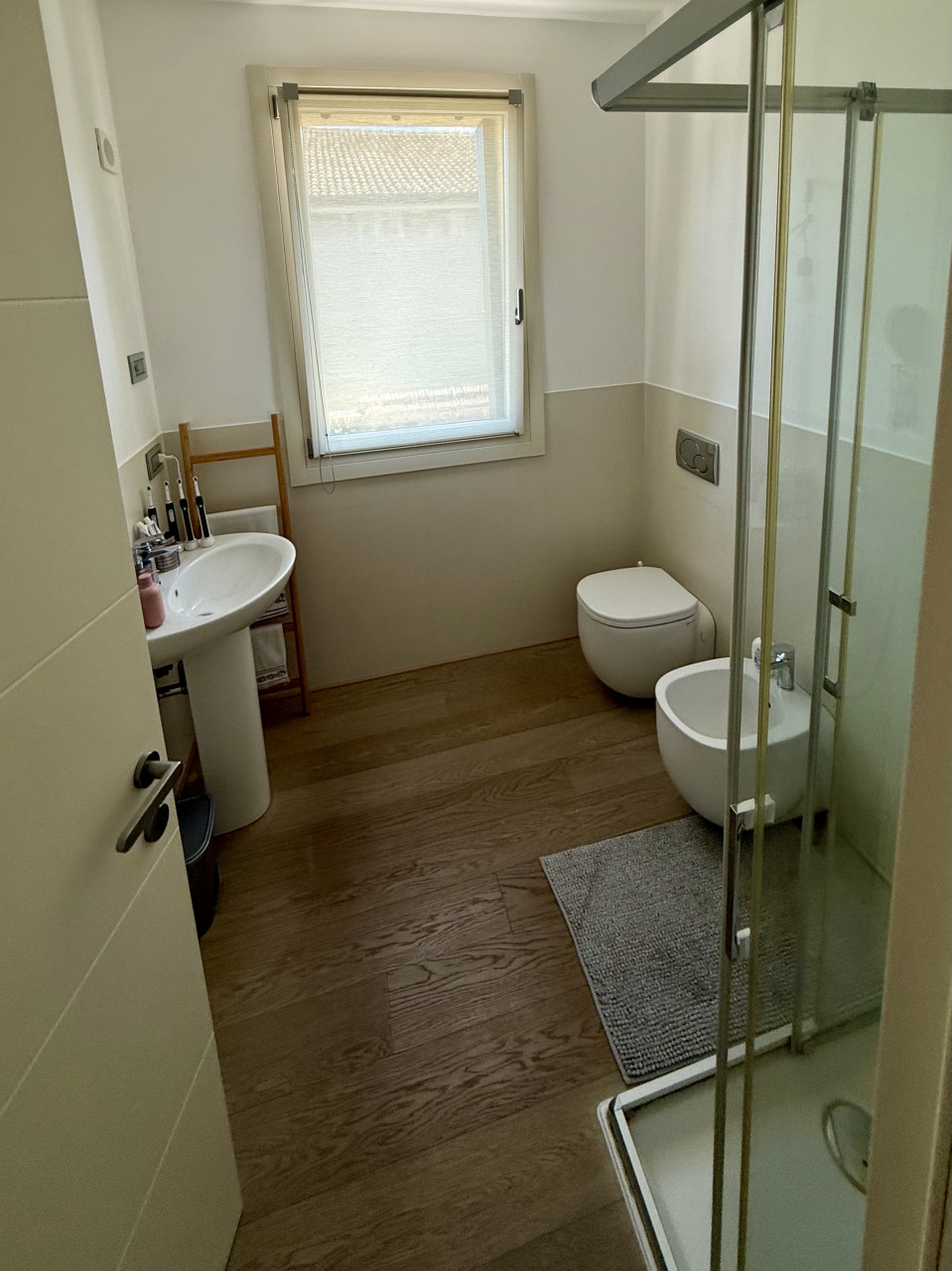 Particolarmente curate le finiture, tra le quali spicca la scala centrale in pietra di Vicenza. L’ampio e curato scoperto esterno, permette di vivere all’aperto in totale privacy e libertà. La proprietà è dotata di impianto elettrico in domotica, serramenti in triplo vetro, frangisole motorizzati e impianto di riscaldamento a pavimento.